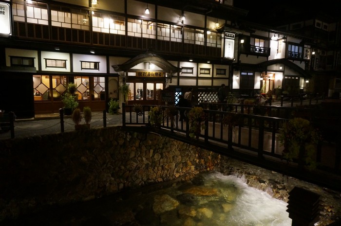 日が暮れて、夜の銀山温泉を散策しました。