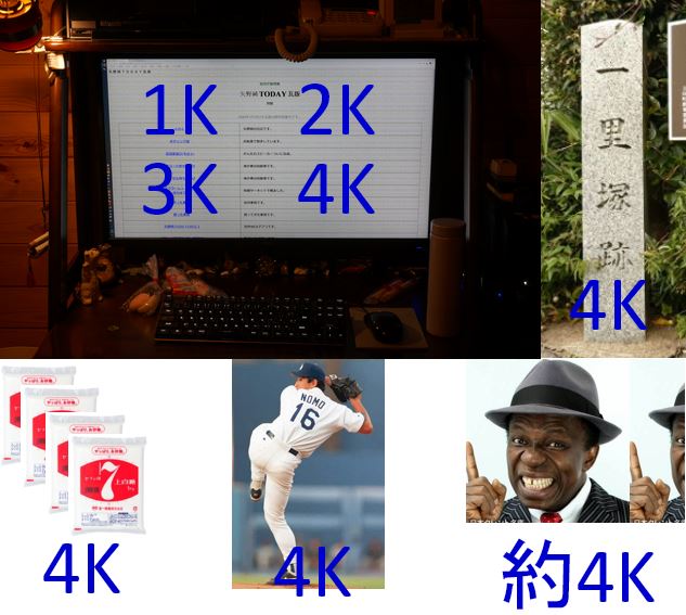 1里は4Kだし、白砂糖が4袋あれば4Kですし、4奪三振も4Kです。
