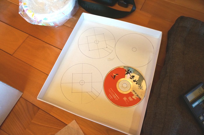 要らないCD-ROMを使って墨付け。 (昨年、Ver29を買ったため不要になった 筆まめVer16です。)