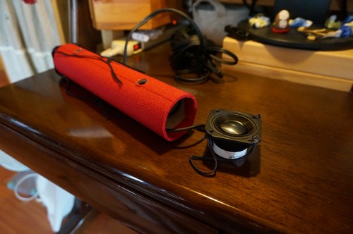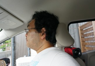 製作 2014年6月12日 [経緯] 私の車のカーナビが中途半端に壊れ、音楽機能だけが使えなくなりました。 幸い、注文している妻用の新しい自動車が届けば、 私の車はもっぱら通勤用になります。 あまりお金を掛けずに、 運転席で音楽を聴くためにスピーカーを作ることにしました。 [構想] 手持ちのスマートフォン的な何かに音楽ファイルを入れて、 それを再生する事にしました。 ヘッドホン端子にパッシブスピーカーを付けようと思いました。座高が高いので、ヘッドレストを一番高くしています。 その金具にスピーカーを付ければ、 耳に近いので小さい音量でもなんとかなるかなと思いました。 [材料選び] ヘッドレストと背もたれの間に6センチの空間があったので、 円筒の両脇に外寸6センチ以下のスピーカーを付けることにしました。 低音寄りの音になるように、 ボイスコイルの直径が出来るだけ大きいものをと思って探し、 Peerlessの830970というスピーカーユニットを選びました。