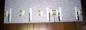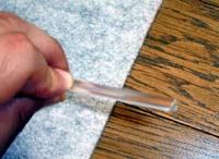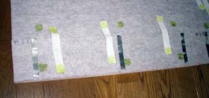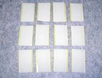 ↑荷室マット完成状態です。 @@@@@@ 後席背もたれ裏のマットは、 マジックテープで、フィットの背もたれ裏面に固定します。 まず、マジックテープのオス側を、 5センチに切ったものを12個準備します。