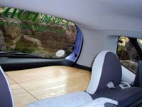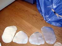 製作過程は・・現物合わせの為、何も資料が有りません(^^;ごめんなさい 段ボール紙を置いて徐々に型を取っていき、 それを元に木製フロアマットの余りの板を切りました。 そして完成したのが、裏面には、 吸音材「SPD−U」(北斗パッキン株式会社製) が全面に貼られています。