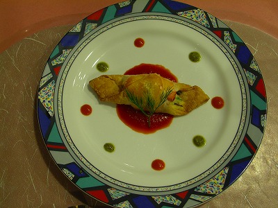 赤身の魚とグラタンのパイ包み。 パイのサクサクとグラタンとトマトソースで昇天します。 | |