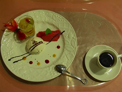 雑穀のアイス、クランベリーのムース、フルーツジュレー。 雑穀がパリパリ、アイスそのものも美味しいです。クランベリーは酸味 で一撃で目が覚めます。ジュレーはやさしい味。 | |