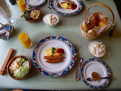 朝食です。サラダバーのスパゲッティーサラダがうまかった。 | |