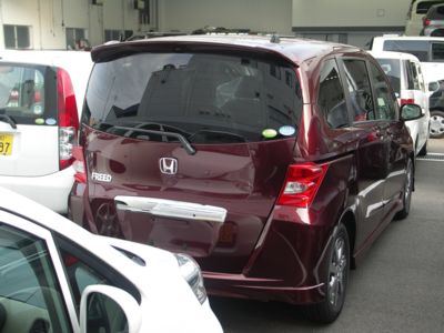 第1候補 バスクレッド・パール 5% 第2候補 プレミアムナイトブルー・パール(新色) 19% 第3候補 プレミアムブラキッシュ・パール 18% 第4候補 ポリッシュドメタル・メタリック 20% 第5候補 ルミナスブルー・パール 5% 第6候補 アラバスターシルバー・メタリック 17% 第7候補 プレミアムホワイト・パール 16% 昨日届いたと担当さんは言っていましたが、 本当かどうか良く分かりません。 車庫証明が取れたのが今週なので、どちらにしろ納車は来週なのでした。 バスクレッド・パールが、 フリードの、クドイほど曲線多用のデザインに似合っていて ホッとしました。 カタログの写真の色とは全然、雰囲気が違います。 今日は雨で、影の部分はかなり黒く見えます。かといって、 暗すぎない赤色です。 晴れた日の強い日差しの中での色が楽しみです。 携帯のカメラで取ったので、イマイチです。 前から撮った写真はピンボケでダメでした。 納車は(私の都合のため)次の土曜日の予定です。 2008年6月23日「車検証発行」 任意保険の車両入替のために、 車検証と自賠責のコピーをもらいに行きました。 我がフリードは、まだスピーカーも付かず放置されていました(T-T) 何にもしてないし〜 スピーカー取り付けは木曜になりそうな気配です。 駐車場には納車待ちのフリードが3台。白が2台に赤1台。 このディーラーのフリード納車第1号は、なんとFLEX (5人乗り)だったそうです。 納車待ちの3台が、納車2〜4号になるそうです。 写真を撮ってきました。