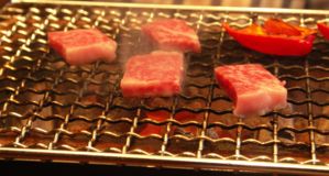 網の上には宮崎牛が。 まったくもってすいません。なんとか勘弁してください。