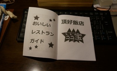 2014年1月30日「豆本」 30年位ぶりに本を書きました。 「シュミラン 宝星 日本2014」という本です。 おいしいレストランが載っています。 裏表紙には広告が。 ※ 言うまでも無く、世界のタイヤメーカーや焼酎メーカーとは まったく無関係です。