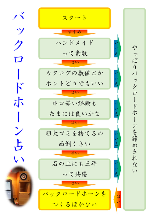 2015年10月9日「バックロードホーン占い」ヤノ劇場大ホール用バックロードホーンスピーカー 「がんたれ」の設計図を今年の2月頃に描き始めて 4月頃に3面図が出来ました。 それを樫樽に詰めて熟成(放置)している間に夏が過ぎました。 描いてみたら難しすぎてエクセルをソッと閉じたままだったんです。 F1観戦から帰ってきて、やっと3面図のエクセルを開く気になれました。 1日に部品の図を2〜3個描いては すばやく保存して閉じています。 疲れる前に今日の作業を終了してイメージアップを図る作戦です。 コツコツやっているようにもイヤイヤやっているようにも見えます。 今年中に出来るか怪しいです。 ヤノ劇場大ホールのコケラ落とし公演は 映画「ジェームス・ブラウン」のブルーレイに決めてあります。 完成が待ち遠しい感じを醸し出してイメージアップを図る作戦です。