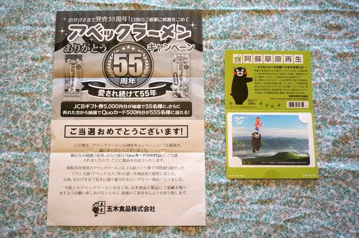 取り急ぎ 今すぐこのQUOカードを全額アベックラーメンに
