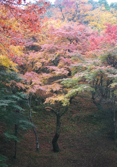 2019年11月24日「紅葉狩り」 大分県朝地町の用作公園に行きました。 用作公園へは何度か行ったことがあります。 気が早すぎて葉が緑色だった年もありました。 今年は紅葉は良かったのですが空が曇っていました。