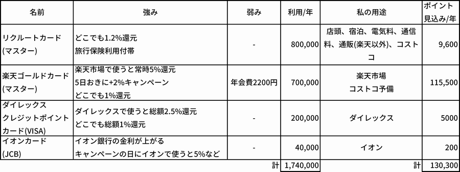 2019年は70万円を使って11万5千ポイントを獲得しました。