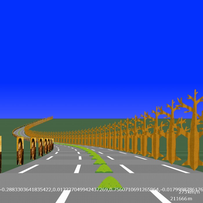 物体をいい感じに配置する機能が出来ました。 木と草原を作りました。 自宅の近くの山の樹の写真を撮って加工しました。 自宅の隣の耕作放棄地の雑草を草原にしました。 2017年5月23日「アコード藍星号ドライブ日和」