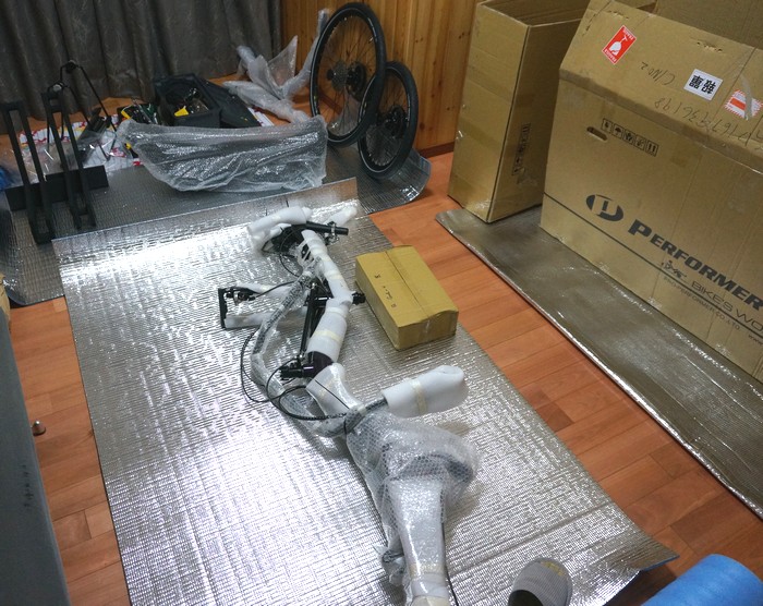 PERFORMERのリカンベント自転車が届きました。 梅雨と台風のシーズンなので外に出せないこともあり、 開梱と組立は来週以降にします。 2019年7月6日「エアサスのバルブのフタ」 今日は通院日。運動を兼ねて自転車(MR4R)で病院へ行きました。 自転車のタイヤとエアサスに空気を入れて エアサスのバルブのフタを閉め忘れて出発しました。 行きがけにエアサスの空気が全部抜けました。 サスペンションが縮みきってシャコタン状態になりました。 家に帰ってエアサスのバルブのフタを見ると 中にゴムパッキンがついていました。 エアサスに空気を入れて、バルブのフタをしっかり閉めて 何度か乗ってみて、異常なしでした。 エアサスのバルブのフタが そんなに重要なパーツだったとは知りませんでした、 2019年7月7日「組立」 今朝、なぜか午前4時に目が覚めてしまいました。 涼しい時間なので箱を開けて組み立てることにしました。