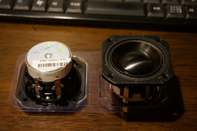 製作 2014年6月12日 [経緯] 私の車のカーナビが中途半端に壊れ、音楽機能だけが使えなくなりました。 幸い、注文している妻用の新しい自動車が届けば、 私の車はもっぱら通勤用になります。 あまりお金を掛けずに、 運転席で音楽を聴くためにスピーカーを作ることにしました。 [構想] 手持ちのスマートフォン的な何かに音楽ファイルを入れて、 それを再生する事にしました。 ヘッドホン端子にパッシブスピーカーを付けようと思いました。座高が高いので、ヘッドレストを一番高くしています。 その金具にスピーカーを付ければ、 耳に近いので小さい音量でもなんとかなるかなと思いました。 [材料選び] ヘッドレストと背もたれの間に6センチの空間があったので、 円筒の両脇に外寸6センチ以下のスピーカーを付けることにしました。 低音寄りの音になるように、 ボイスコイルの直径が出来るだけ大きいものをと思って探し、 Peerlessの830970というスピーカーユニットを選びました。