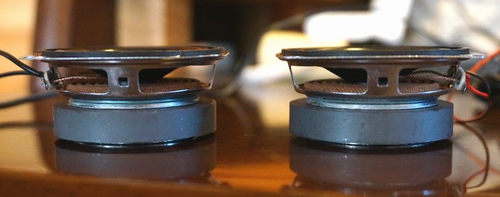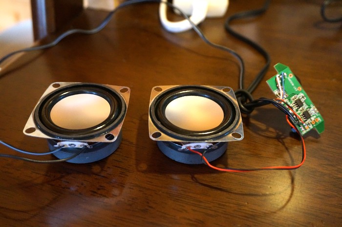100均のスピーカーからユニットを取り出して別の箱に取り付けて