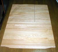 木製マットは、そのままではクネクネと曲がってしまうのです。 アルミの板を貼り付けることで、曲がらなくなります。 (端板のみに、この加工をしておきます)