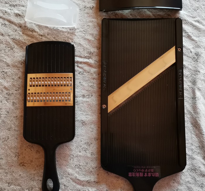 キャベツの千切り用に楽天で買ったのですが 届いたら少し大きくて羽子板かと思いました。 すばやく千切りにできましたが 本体と刃の隙間が広いので、もし指を切ると大けがしそうに感じ 最後までは千切りにしませんでした。
