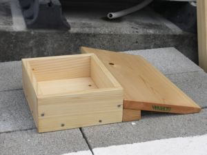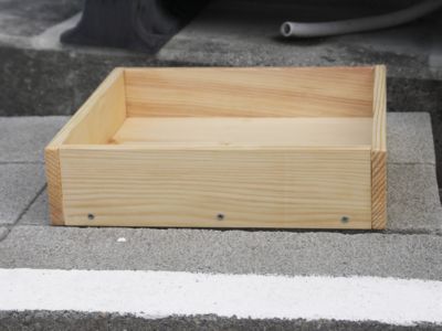 【小物収納スペースを増やす。】 フリードに限らず、最近の車は、(その道の先駆者である軽自動車並に、) 空間効率が追求されて、広い室内を得た半面、 小物入れスペースが少ないです。 フリードのグローブボックスに、車検証や取扱説明書を入れたら、 それだけでボックスが満杯で、 貴重な小物入れのスペースが無くなってしまいます。 そこで、 2列目の席の下に箱を置いて、 常備品を入れておこう(車検証、牽引ロープ、バッテリーケーブル、 タイヤチェーン等) と考えて箱を作りました。32cm四方、厚さ8cmの箱を作ろうと思ったのに、 出来上がってみたら、31.1cm*30.4cm、 厚さ7.5cmの箱が出来てしまいました。