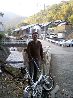 15時15分、柴石温泉に着きました。 駐輪場はありません。 こんな所に自転車で来るヒトは稀なので有る訳がありません。
